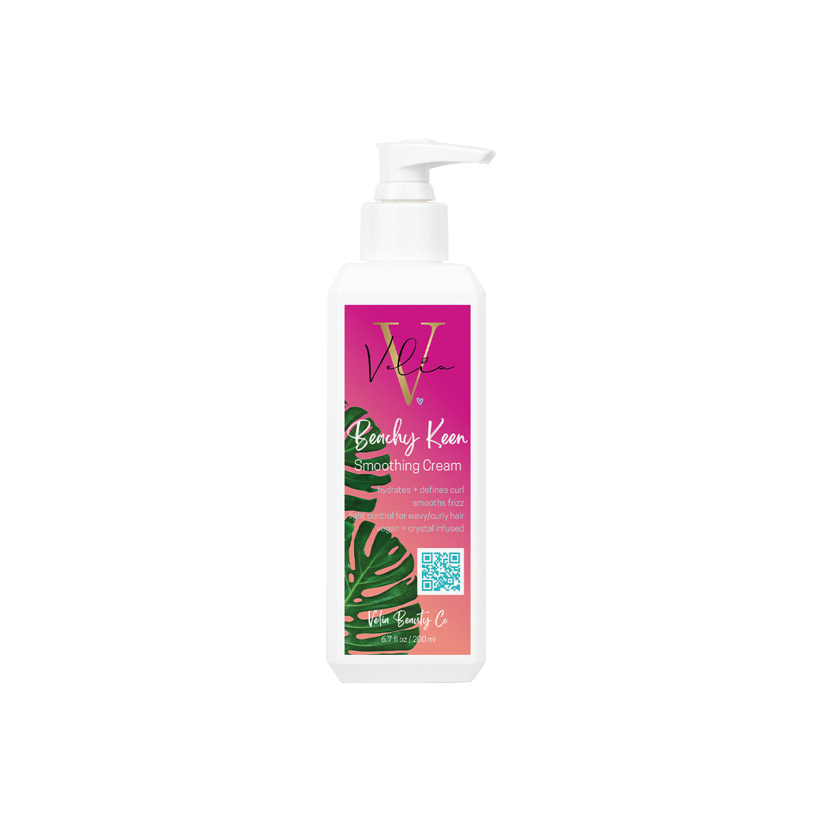 A smoothing cream with a split personality. Apply to wet hair and blow dry for a smooth, silky style or allow your wavy or curly hair to airdry naturally to obtain soft, frizz free waves. UV Prtoection, hydrates, smooths, controls frizz, defines curl.